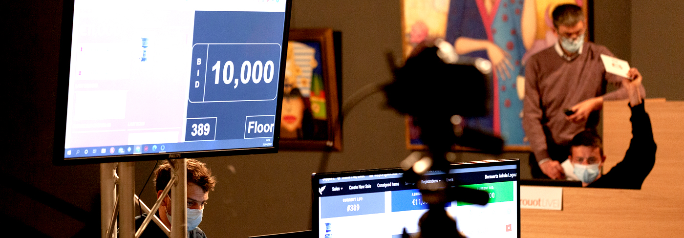 Autres prix remarquables : un mortier du 17ème siècle (lot 26, rés. : € 5000), un bénitier en argent par Jan-Baptist I Verberckt (lot 56, rés. : € 4000), un plat Castelli du 18ème siècle en majolique (lot 74, rés. : € 3200), un lot de trois cruches Westerwald (lot 136, est. : € 500, rés. : € 5500).